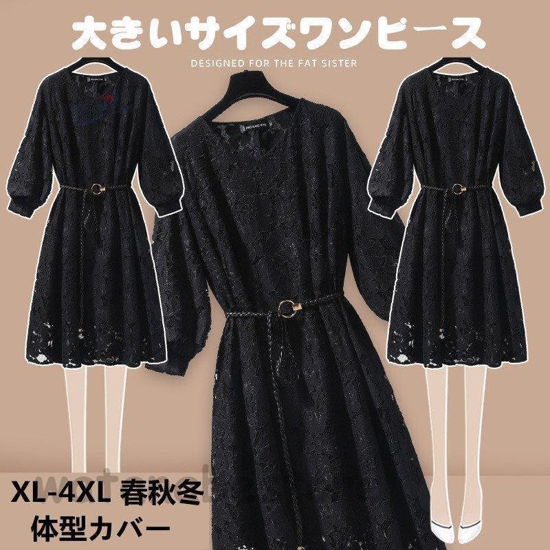 お得な送料無料 レディースファッション 大きいサイズ チュニック ワンピース レース ブラック プラス 春秋冬 体型カバー Xl 2xl 3xl 4xl ゆったり 代 激安店 Shirleyryan Ca